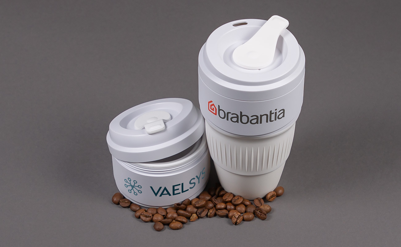The Barista is a fantastic Travel Cup that features two enlarged branding areas for your logo, slogan, website address and more. The Barista also boasts an easy-sip lid and it can be collapsed when not in use, perfect for when you're on the go.